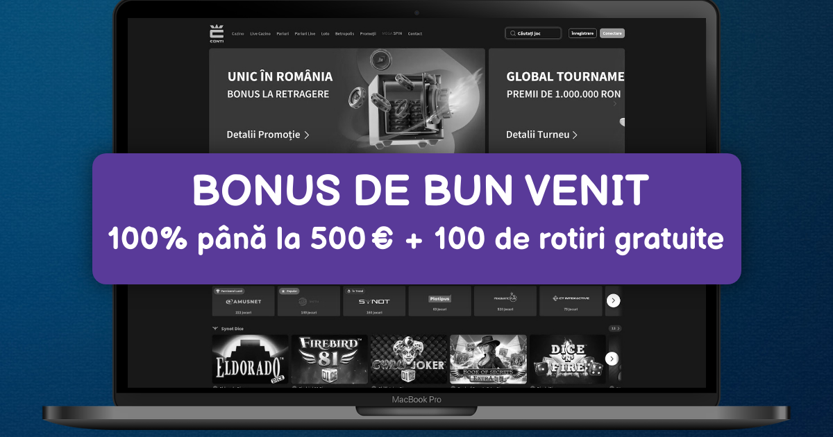 Bonul de bun venit de la Conti Casino include până la 4.500 RON și 300 de rotiri gratuite. Acest bonus atrage jucătorii noi și răsplătește depunerile inițiale.